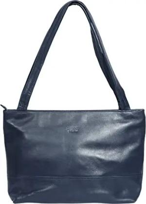 Damen-Schultertasche Ledertasche Echtleder blau 3900055