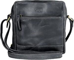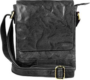 Unisex - Umhängetasche bis 14 Zoll Leder 27,5x22x7,5cm 3900043 (Schwarz)