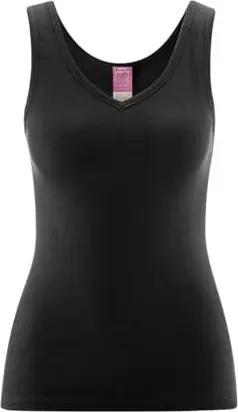 Janine | V-Neck-Trägertop - Bequemes Feinripp-Design, ohne Seitennähte, Tiefer V-Ausschnitt, hochwertig und nachhaltig 100% Bio-Baumwolle (40/42, Black)