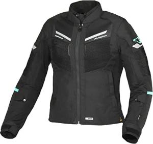 Nivala Damen wasserdichte Motorradjacke Textil, Schwarz/Blau, XS