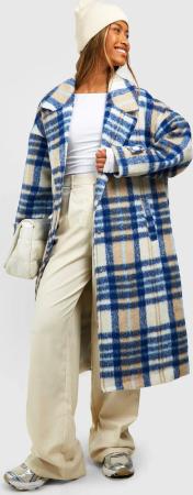 Karierter Oversize Mantel In Wolloptik - Blue - 34, Blue