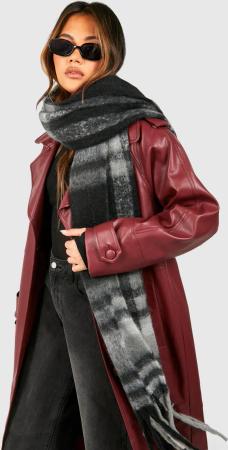 Schwarzer Karierter Schal Mit Fransen - Black - One Size, Black