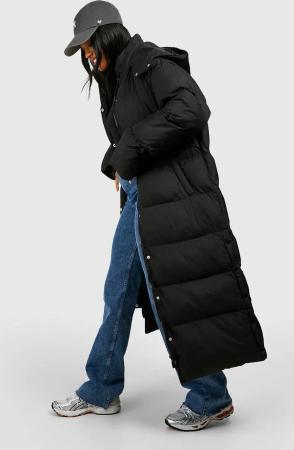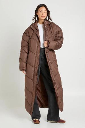 Womens Tall Hooded Quilt Detail Maxi Puffer - Chocolate - 36, Chocolate