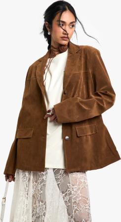 Oversize Blazer In Vintage-Optik Aus Wildlederimitat - Tan - 34, Tan