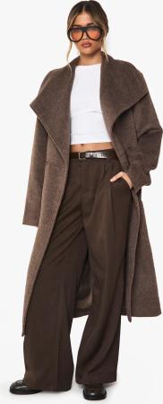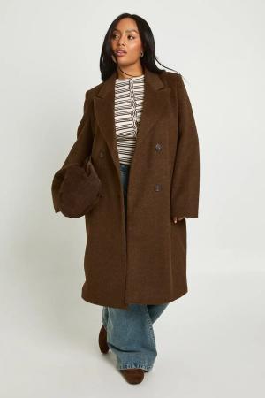 Womens Plus Wool Look Double Breasted Trench Coat - Chocolate - 44, Chocolate