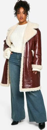 Plus Kunstleder Fliegerjacke Mit Teddy-Detail - Burgundy - 42, Burgundy