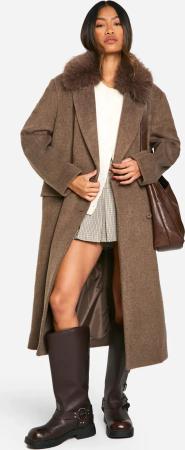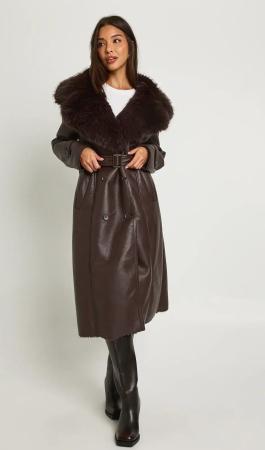 Trenchcoat Mit Kunstfell-Kragen - Chocolate - 36, Chocolate