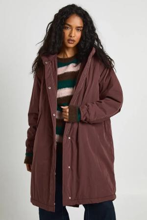 Womens Hooded Longline Parka - Chocolate - 36, Chocolate