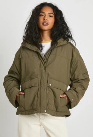 Womens Hooded Short Parka - Khaki - 34, Khaki