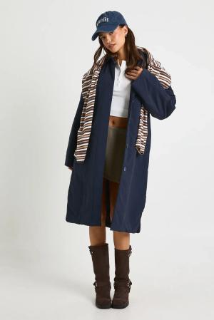 Womens Longline Padded Jacket - Navy - 36, Navy