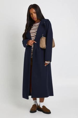 Womens Oversized Maxi Wool Look Coat - Navy - 36, Navy