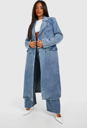 Zweireihiger Denim-Trenchcoat - Mid Blue - 34, Mid Blue