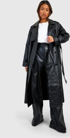 Plus Kunstleder-Trenchcoat Mit Gürtel - Black - 44, Black