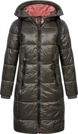 Damen Wintermantel (XS-6XL) - gesteppt, mit Kapuze, Belüftungsschlitz - N090 - DarkOlive Größe XL - Gr.XL