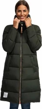 Damen Wintermantel (XS-6XL) - gesteppt, mit Kapuze, Belüftungsschlitz - N090 - DarkOlive Größe XL - Gr.XL