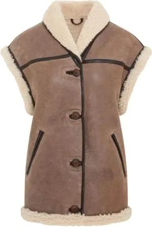 Braune Fliegerweste für Damen aus Shearling-Schaffellleder mit Körperwärmer