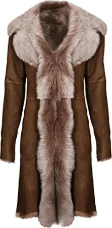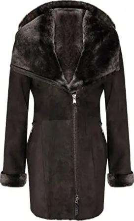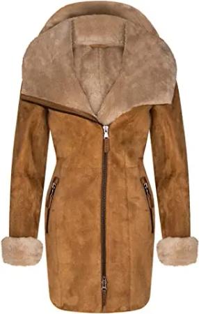 Damen Braun Damen Echt Toscana Schaffell Leder Wildleder Jacke Trenchcoat XL