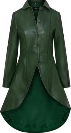 Damen Gotisch Grün Leder Edwardianisch Viktorianisch Flare Mantel