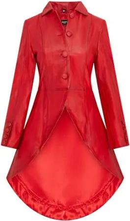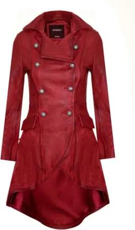 Damen Punk Mantel aus Rotem Edwardian-Gothic Leder in Voller Länge