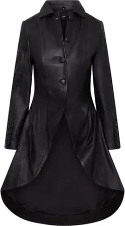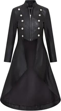 Damen Gotisch Schwarz Leder Edwardianisch Viktorianisch Flare Mantel
