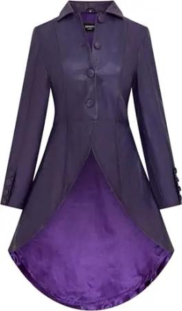 Damen Gothic Lila Ledermantel in Voller Länge Victorian Flare Goth Punk