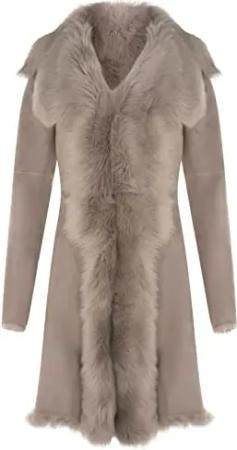 Damen Taupe Damen Echt Toscana Schaffell Leder Wildleder Jacke Trenchcoat XS