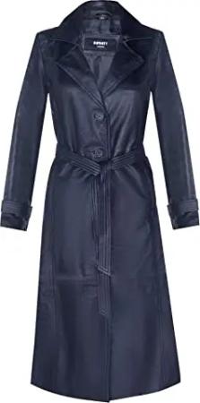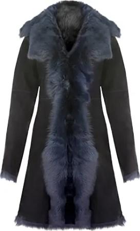 Damen Navy Blau Damen Echt Toscana Schaffell Leder Wildleder Jacke Trenchcoat S