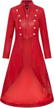 Damen Gothic Ledermantel in Voller Länge, Rot, Viktorianisch, Ausgestellt, Goth Punk