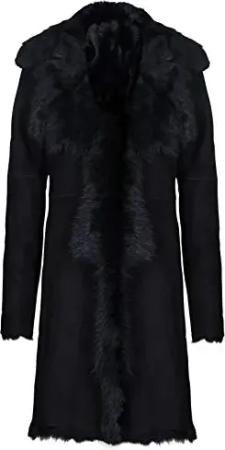 Damen Schwarz Damen Echt Toscana Schaffell Leder Wildleder Jacke Trenchcoat M
