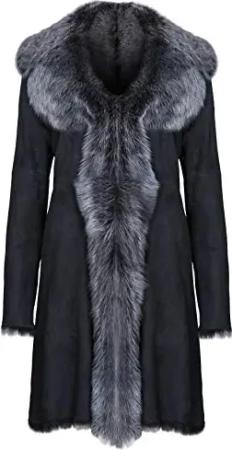 Damen Schwarz und Grau Damen Echt Toscana Schaffell Leder Wildleder Jacke Trenchcoat XL