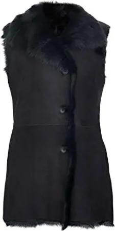 Frauen Chic Schwarz Wildleder Toscana Shearling Leder Schaffell Gilet Geknöpft 3XL