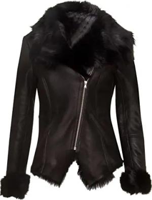 Lammfell Motorradfahrer Schaffell Fliegerleder Merinojacke für Damen