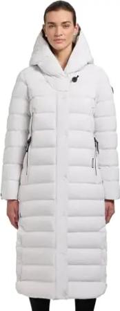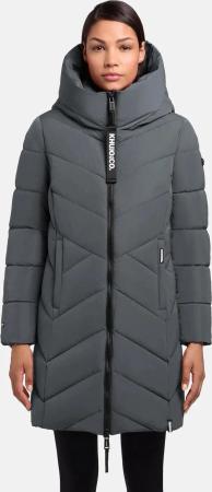 Damen Langer Wintermantel warmer Steppmantel mit schimmerndem Innenfutter und Kapuze Nekar-YM Blizzard Grey Gr. L