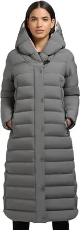 Damen Langer Wintermantel warmer Steppmantel mit schimmerndem Innenfutter und Kapuze Nekar-YM Blizzard Grey Gr. M