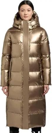 Damen glänzender warmer Winter Steppmantel lang mit abnehmbarer Kapuze Hedd Shiny-YM Gold Gr. S