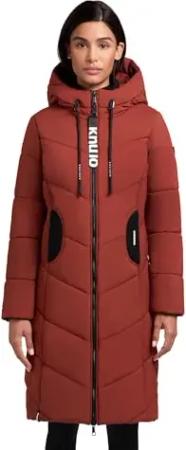Damen Langer Wintermantel warmer Steppmantel mit großer Kapuze Jilias5-YM Dark Red Gr. L