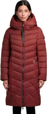 Damen Langer Wintermantel warmer Steppmantel mit Schlüsselanhängerund verstellbarer Kapuze Odana3-YM Dark Red Gr. L