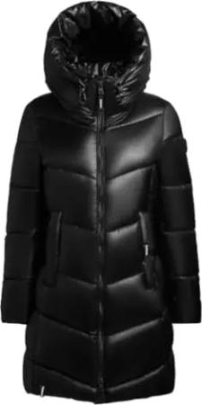 Damen glänzender warmer Winter Steppmantel lang mit abnehmbarer Kapuze Hedd Shiny-YM Black Gr. XS