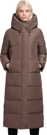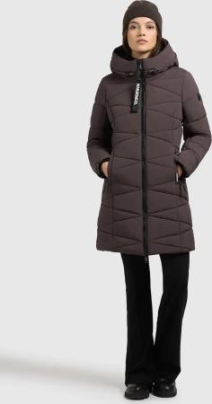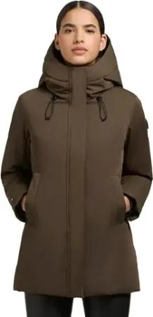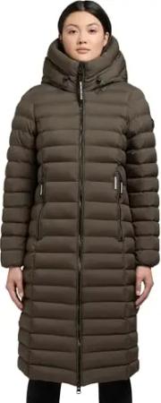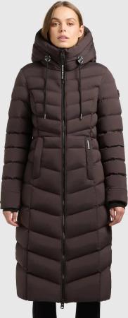 Damen Wintermantel in glänzender Optik warmer wasserdichter Steppmantel lang mit abnehmbarer Kapuze Haya Shiny-YM Mud Brown Gr. L