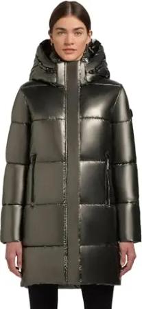 Damen glänzender warmer Winter Steppmantel lang mit abnehmbarer Kapuze Hedd Shiny-YM Medium Grey Gr. S