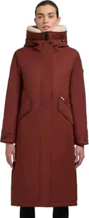 Damen Wintermantel warmer Parka mit weichem Teddyfleece an der Kapuze, Taillenzugband und magnetischer Abdeckleiste Agneta-YM Coconut Brown Gr. XS