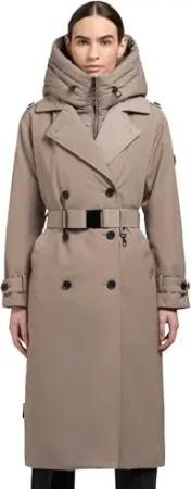 Damen Wintermantel warmer Trenchcoat mit Taillengürtel und abnehmbaren Kragen Elena-YM Greige Gr. XXL