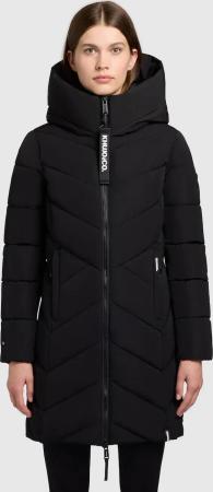 Damen Mantel lange warme Steppjacke mit abnehmbarer Kapuze und magnetischer Abdeckleiste Haya Matt-YM Black Gr. XL