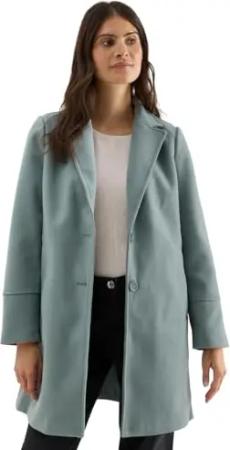 Damen Mantel in Wollmantel-Optik langer Trenchcoat mit Reversekragen Nanakoo Smokey Mint Gr. L