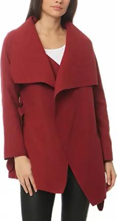 Malito Damen Mantel kurz mit Wasserfall-Schnitt | Trenchcoat mit Gürtel | weicher Dufflecoat | Parka - Jacke 3041 (bordeaux)