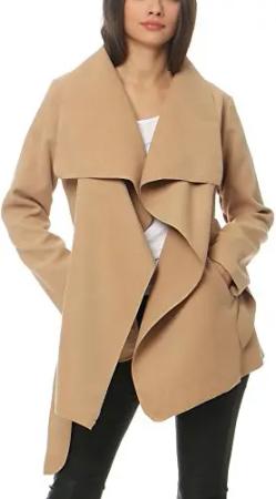 Malito Damen Mantel kurz mit Wasserfall-Schnitt | Trenchcoat mit Gürtel | weicher Dufflecoat | Parka - Jacke 3041 (camel)