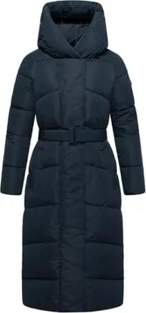 Damen Extralanger Wintermantel warmer Steppmantel mit Taillengürtel Eisblick 14 Navy Gr. M