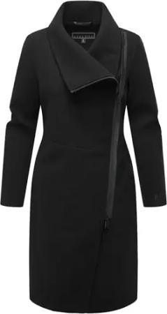 Damen lange Übergangsjacke Mantel in Woll-Optik mit asymmetrischem Kragen und wasserdichtem Reißverschluss Samtrose 14 Black Gr. L