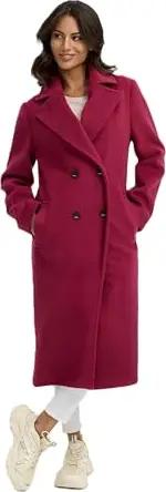 Damen Mantel in Woll-Optik langer klassischer Trenchcoat Frostjuwel 14 Berry Wine Gr. XL