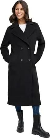 Damen Mantel in Woll-Optik langer klassischer Trenchcoat Frostjuwel 14 Black Gr. XS